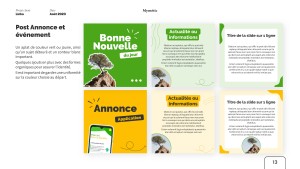 L'identité de la marque, il faut pouvoir se l'approprier. Il faut des exemples. Revoir l'identité de marque a aussi été le moment de revoir un peu la stratégie éditoriale : quels posts, quels types, comment ? Nous avons réalisé plusieurs exemples de post pour les réseaux sociaux avec leurs visuels.