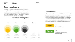 Au sein de l'application, les catégories ont chacune leur couleur. Il a fallut vérifier que cette palette de couleur fonctionnait bien ensemble et séparément. Mais il a surtout fallu vérifier que le contraste entre ces couleurs et le blanc ou le noir était suffisant pour améliorer l’accessibilité. C'est chose faite, en se basant sur le RGAA.